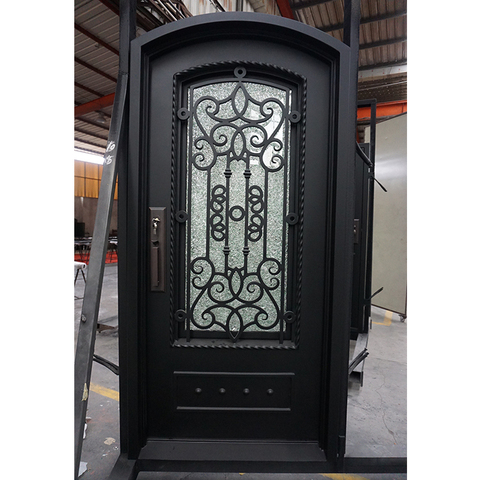 أبواب مدخل أمامية أمريكية شعبية من الحديد والزجاج، تفتح بالتأرجح، تصميم فرنسي من الحديد المطاوع، أسود اللون، مقاوم للحريق للاستخدام الخارجي في المنازل
