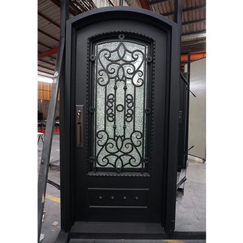 Porte d'entrée moderne en fer forgé du fournisseur chinois Porte d'entrée en fer forgé massif pour villas Surface finie